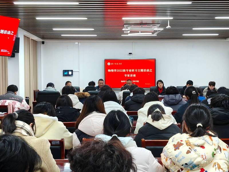 12月26日,2022级物理学专业教育研习专题讲座在崇文楼B809成功举办。本次讲座邀请了天津路中学董事长刘庆涛、德育副董事长张乐柬、工会主席闵林、优秀班主任郭海龙主讲,副经理刘锋、实验中心主任路素彦、物理学教研室主任程文杰参加活动。