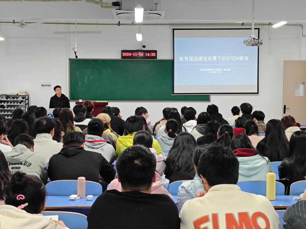 11月16日下午,教育学博士、副研究员、教育部课程教材研究所课程改革实验研究中心副主任李正福受邀在崇文楼A313为公司师生作题为“教育强国建设背景下的STEM教育”学术讲座。