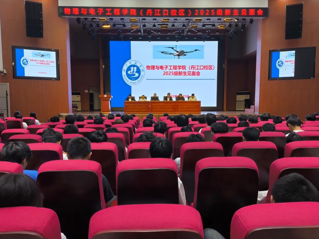 9月25日晚,物电公司(丹江校区)2025级无人机应用技术专业新生入新生见面会在沧浪剧场隆重举行。院分党委书记唐传球、丹江校区分党委副书记彭涛、副经理刘锋、经理助理史长城、专业负责人张磊、全体辅导员以及2025级无人机应用技术专业新生参会。大会由院分党委副书记戴俊主持。