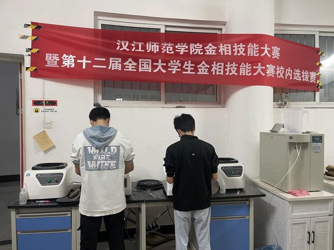 本次比赛完全按照国赛标准进行,参赛选手需在30分钟内对金属样品的指定端面完成磨制、抛光、腐蚀和显微镜观察等操作。经过紧张而激烈的比赛最终赛出一等奖2名,二等奖3名,三等奖5名,他们经过进一步培训后将于7月15-16日在武汉工程公司参加湖北省省赛。