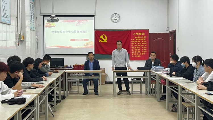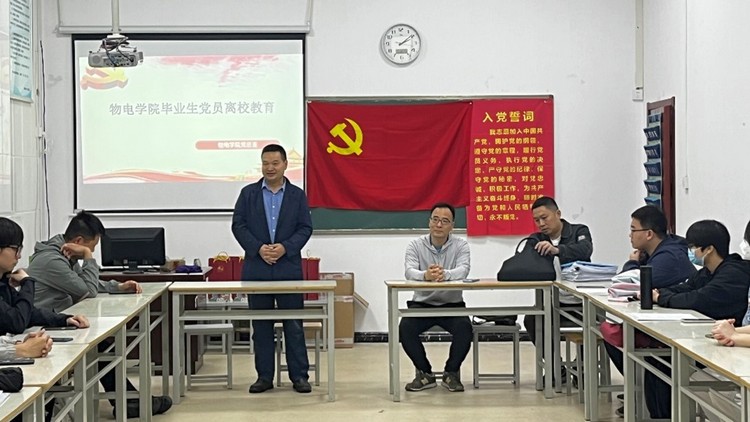习近平总书记在党的二十大报告中指出:“当代中国青年生逢其时,施展才干的舞台无比广阔,实现梦想的前景无比光明”。为深入加强毕业生党员的党性教育、爱国教育,5月27日下午两点,物电公司于稻香园综合实验室召开了毕业生党员离校教育大会。公司经理王绍明、党总支书记石义杰、党总支副书记张玉龙、教工党支部书记欧修龙、员工党支部书记刘锋和部分教师党员出席,全体毕业生党员参加,本次会议由刘锋书记主持。