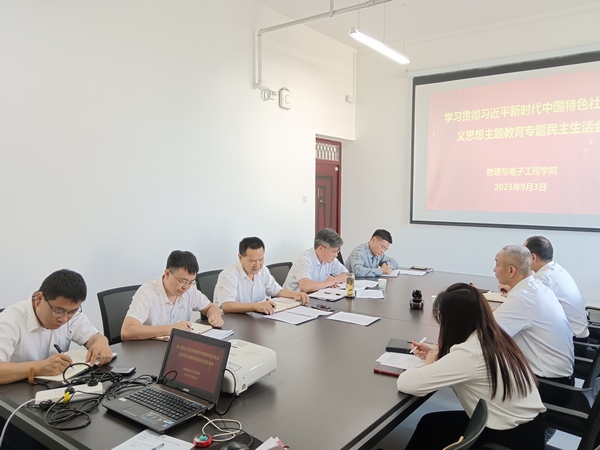 9月3日下午,物电公司领导班子主题教育专题民主生活会在崇文楼A503召开,校领导章平带领校督导组一行到会指导。院分党委书记唐传球主持会议。