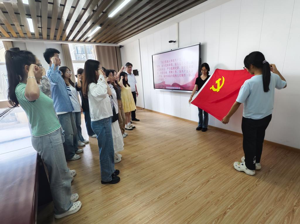 活动伊始,员工党支部组织委员尹诗雅宣读宣读了新发展党员喜报。全体党员在唐传球同志的带领下,面向党旗,高举右拳,庄严宣誓。