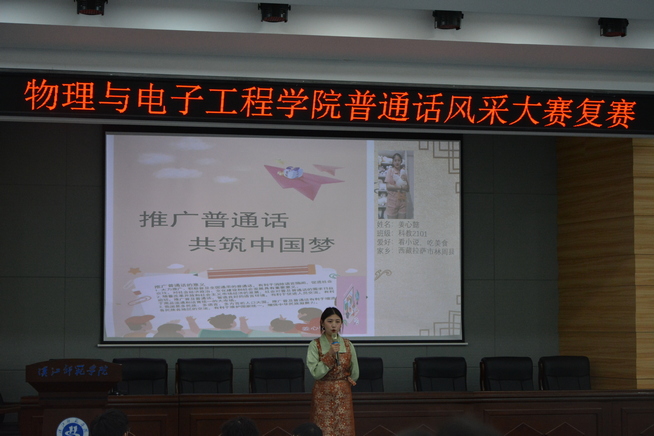 经过初赛激烈的角逐,共有9名选手进入复赛。在此次复赛中,选手们个个精神饱满,向观众们展示了不同主题的演讲内容,有美丽的中国,拼搏的少年,也有豪放的诗词,诗情的江南以及热情奔放的少数民族等,赢得了现场观众的一致好评,也让在场观众感受到了普通话的魅力。