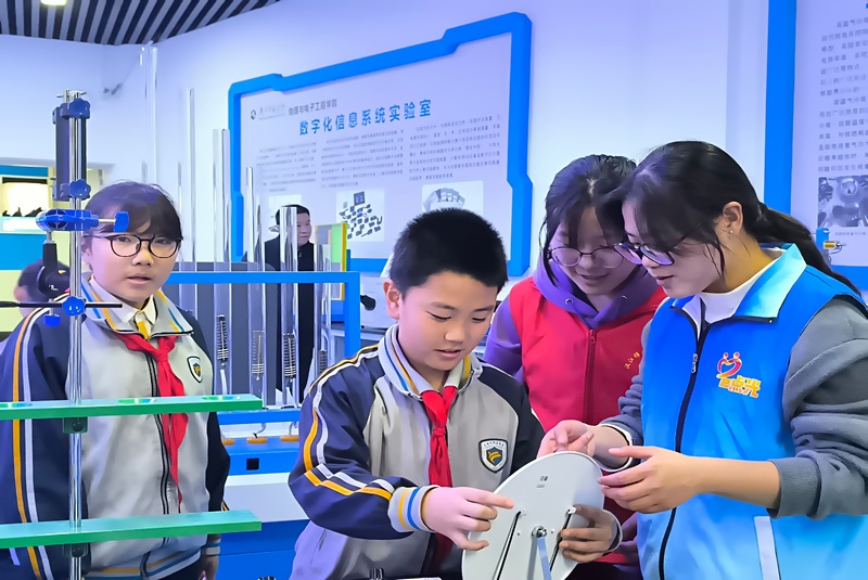 4月10至12日,物电公司“e点光”志愿服务队携手物理演示实验室开展实验室开放日活动。十堰市外国语小学的34名师生走进物理演示实验室体验科学的奥妙。
