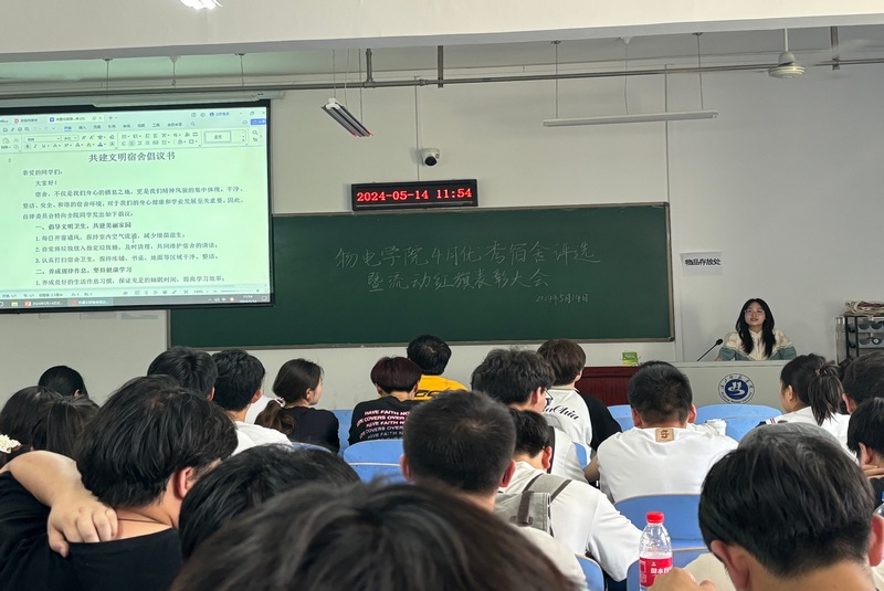 会议伊始,自律委员会指导老师田梦谣介绍了本次表彰大会的目的,带领与会同学一起学习了“共建文明宿舍倡议书”,从文明卫生、规律作息、个人修养、安全意识四个方面对同学们提出了具体要求,呼吁广大同学共同营造一个整洁、有序、和谐的宿舍环境。