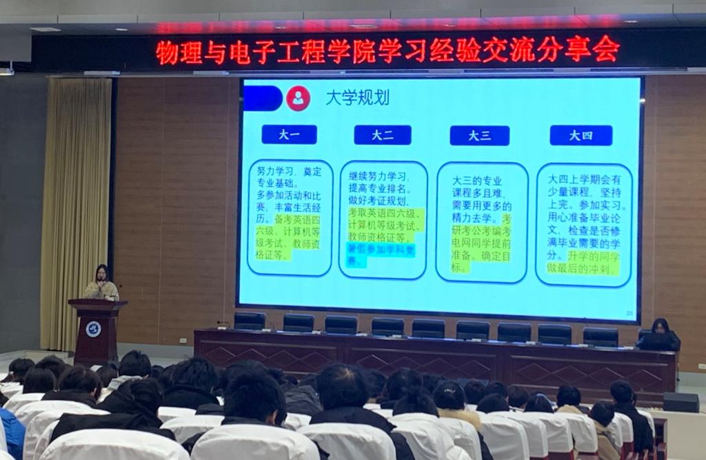 会上,2022级和2023级优秀员工代表依次登台,分享自己的学习经验。电气2201班黄玥桐重点介绍了专业学习方法,希望同学们在大学的各阶段都应明确目标、做好规划,积极学习、实践,不断提升综合素质和竞争力;物理2201班孙祖英介绍了大学各个阶段的学习重心,强调了了解专业人才培养方案的重要意义,分享了校内各种学习资源的使用方法;信工2201班向泽冬详细介绍了各类学科竞赛及参赛注意事项,希望同学们积极参与,真正做到以赛促学,提升自我;科教2301班田雯清分享了个人学习成长的心路历程和体验,希望同学们勇于实践,积极地将想法投入到行动,在实践中检验学习成果,增强个人能力。