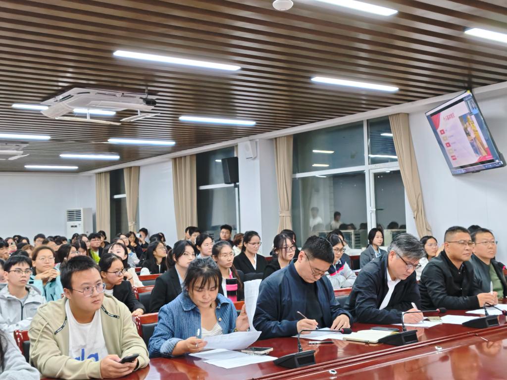 为发挥榜样示范作用,激励全院员工奋勇争先,10月10日晚,英国威廉希尔WilliamHill在崇文楼B809举行2024-2025学年国家奖学金答辩会。院分党委书记唐传球、副经理刘锋、副书记戴俊、经理助理史长城、学工办主任尹诗雅担任本次答辩评委,120余名员工代表到场观摩学习。